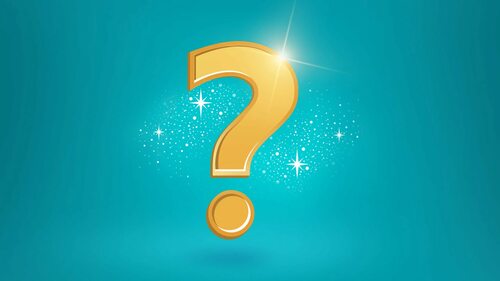 Этот вариант представляет собой абстрактную композицию из различных графических элементов, в центре которой находится вопросительный знак. Фон выполнен в ярких цветах, что создает ощущение игры света и тени.