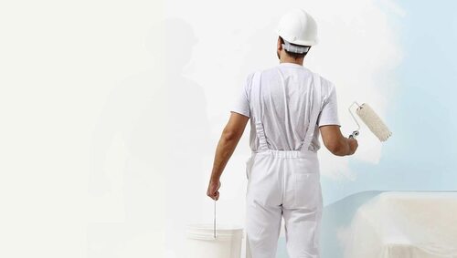 Человек красит стену